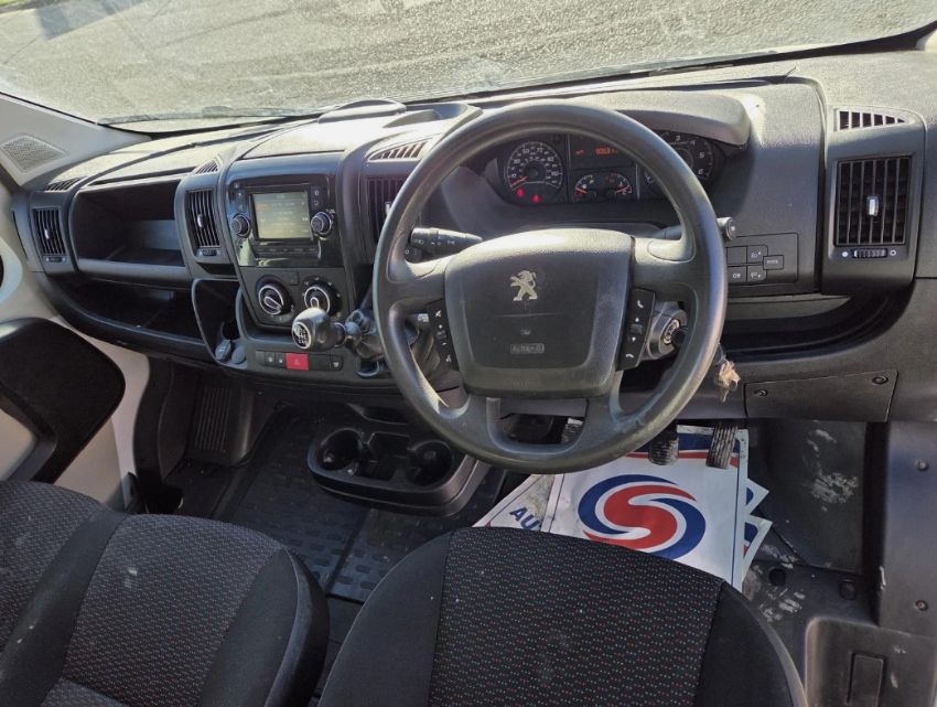 This 2018 PEUGEOT BOXER 335 PRO L2H2 BLUE HDI Panel Van, finished in White, features a 1997cc Diesel engine paired with a Manual transmission. The vehicle is a Euro 6 compliant model, making it ULEZ compliant. It displays 90,527 miles on the odometer, noted from its latest MOT, with actual mileage potentially higher since the last test. The van is classified as an L2H2 (5,413mm long × 2,522mm high), offering substantial cargo capacity. Key features include Cloth Trim, Power Assisted Steering, a 6-speed gearbox, Cruise Control, and Air Conditioning for driver comfort. Practical additions comprise Electric Windows, Satellite Navigation, and a Multi-Function Steering Wheel. For cargo management, the van is equipped with a convenient Side Door, a Bulkhead, Rear Shelfing, and Woodlining. Parking Sensors and Central Locking enhance daily usability. Vehicle history checks confirm no outstanding finance and no recorded write-off history. Ownership records indicate a stable profile with zero recorded keeper changes, suggesting single-user operation since new. This PEUGEOT BOXER 335 PRO L2H2 BLUE HDI presents as a well-documented commercial vehicle with clear history.