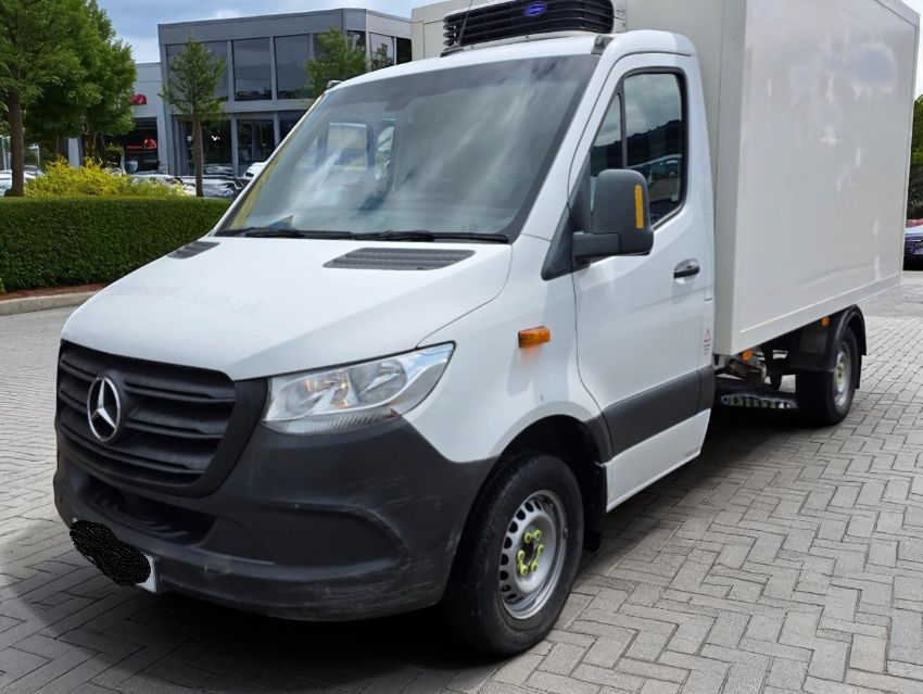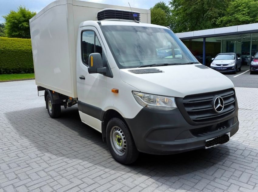 This 2020 Mercedes-Benz Sprinter 315 Progressive CDI Chassis Cab, in white, is an L2 medium wheelbase insulated box fridge van with rear-wheel drive. It is powered by a 1950cc diesel engine paired with a 6-speed manual transmission, showing 191,000 miles. The vehicle was registered in the UK on 02/11/2020. This Sprinter is a Euro 6 compliant model, making it suitable for various operational zones. The insulated box body is designed for temperature-controlled transport, capable of maintaining temperatures down to approximately 0°C. Access to the cargo area is facilitated by a rear access personnel door. The cab features a black cloth interior and offers a seating capacity for three occupants. Supplied with one key, it has had zero total keepers, indicating single ownership since new, a positive for ongoing maintenance consistency. Four MOT tests are on record, with the latest passed test resulting in a valid MOT until October 2026. The mileage progression is linear across MOT records, confirming the 191,000-mile reading. History checks confirm no outstanding finance and no write-off recorded. No theft markers are present.