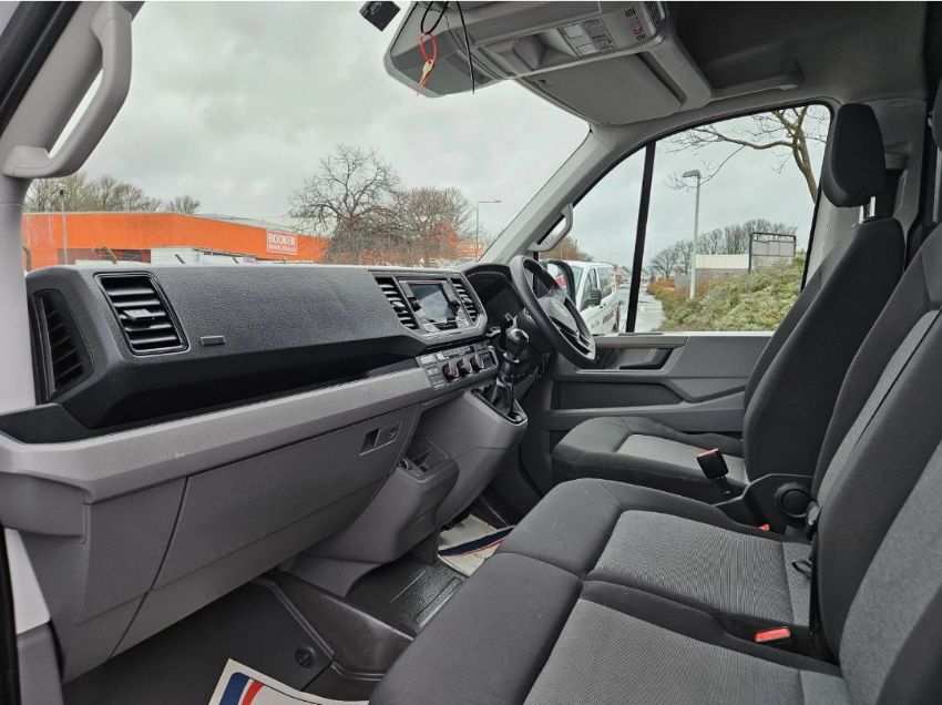 This 2024 VOLKSWAGEN CRAFTER CR35 COMMERCE TDI L4H3 Panel Van, finished in White, represents Volkswagen's commitment to robust and versatile commercial vehicles. The Crafter model range is positioned within the large panel van segment, offering substantial cargo capacity and practical features for various business applications. This specific vehicle, a CR35 Commerce trim, is powered by a 1968cc Diesel engine paired with a Manual transmission, delivering efficient performance. With 45,000 miles recorded, this Euro 6 compliant vehicle is ULEZ free. It is supplied with 2 remote keys, cloth trim, power-assisted steering, a 6-speed gearbox, cruise control, air conditioning, electric windows, Bluetooth/stereo connectivity, parking sensors, and a multi-function steering wheel. Additional commercial features include a side door, bulkhead, woodlined interior, and central locking. The first MOT is due at the end of May 2027, and the vehicle remains under manufacturer warranty. This vehicle has had a single owner from new. Vehicle history checks confirm clear finance status and no write-off history recorded. Dimensions: 6,836mm long × 2,590mm high.