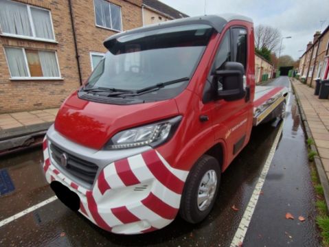 This 2021 FIAT Ducato 35 Multijet II 2.3 Diesel Manual Chassis Cab in Red presents with 165,513 miles recorded. It is a purpose-built AMS recovery truck, constructed for Yorkshire Rescue, featuring air suspension and ramps designed for low cars. The vehicle is equipped with a Lodar wireless remote system, top-quality beacons, and work lights. A significant update includes a brand new engine from Fiat installed at 150,000 miles, with proof of the £8,500 cost. Additional features include air conditioning, cruise control, Bluetooth connectivity, and 360-degree cameras. The seller notes this unit has only recently come off the fleet at Yorkshire Rescue, having been used as a spare truck, contributing to its excellent condition throughout. A detachable tow bar is also fitted. The vehicle history checks confirm no outstanding finance and no write-off history recorded. There are 2 MOT tests on record, all passed first time, with the latest MOT valid until March 2026. The vehicle has had two keepers since registration. This Ducato offers a comprehensive specification for recovery operations.