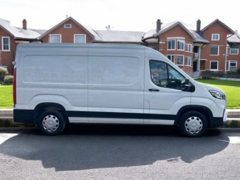 This 2023 MAXUS DELIVER 9 L3H2 (5,940mm long × 2,535mm high) 1996cc Manual Panel Van, presented in White, shows 118,000 miles since its UK registration on 11/08/2023. This Euro 6 compliant diesel commercial vehicle is ULEZ compliant and features a 6-speed gearbox. It is a single-owner vehicle from new, indicated by one recorded keeper. The interior is specified with cloth trim, 3 seats, air conditioning, and electric windows. Driver convenience is enhanced with cruise control and a multi-function steering wheel. For entertainment and connectivity, it includes a Bluetooth stereo system. Parking is assisted by parking sensors. The load area is practical, featuring a side loading door, a bulkhead, and a wood-lined load area. Central locking is also present. Vehicle history checks confirm no outstanding finance recorded and no write-off history. The vehicle has a valid MOT. Dimensions: 5,940mm long × 2,535mm high.