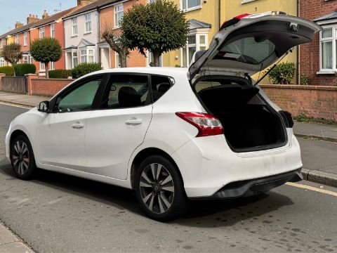 This 2015 Nissan Pulsar 1.2 DIG-T n-tec Manual Petrol Hatchback, finished in White, has 77,000 miles recorded and three keepers since new. The vehicle is offered as a part exchange to clear. The seller notes the bodywork does require attention, which is visible in the provided photographs. It is equipped with a reverse camera, Bluetooth connectivity, and an integrated navigation system. The vehicle will be supplied with a new 12-month MOT certificate upon sale and comes with its full logbook. There are 13 MOT tests on record, with the latest test resulting in a pass. The ownership turnover is within expected parameters for a nine-year-old hatchback, and the mileage data is consistent across all tests, indicating steady usage. MOT records show a low advisory-per-test average of 0.4. This Nissan Pulsar offers a desirable specification with clear history.