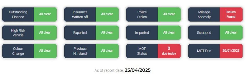 As of report date {25/04/2025} Mileage Anomaly Issues- See image!