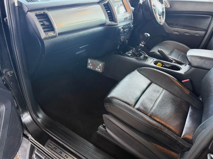 This 2020 FORD RANGER LIMITED ECOBLUE 4X4, finished in Black, features a 1996cc Diesel engine paired with a Manual transmission, displaying 147,105 miles on the odometer. This Euro 6 ULEZ compliant Pick Up is a single-owner vehicle from a large electric board company, indicating consistent maintenance. The specification includes full leather upholstery, heated electric seats, alloy wheels, a tow bar, canopy top, reverse camera, SYNC infotainment, Bluetooth connectivity, side steps, electric fold-in mirrors, USB ports, and a 150W inverter plug. Seller notes a new recent wet belt and turbo, with images available for review. The vehicle has power steering, remote central locking, electric windows, air conditioning, and climate control. Five MOT tests are on record, with the current MOT valid until February 2027. The vehicle history check confirms no outstanding finance and no write-off history recorded. This well-specified 2020/20 Ford Ranger Limited Double Cab 4x4 Pick Up offers a comprehensive feature set.