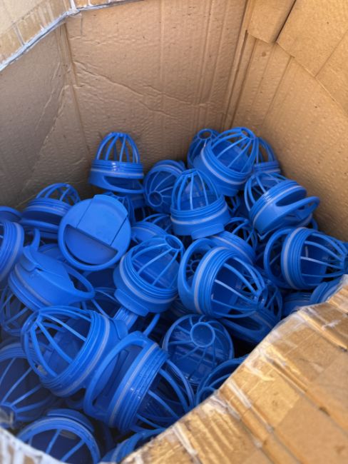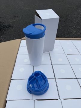 200X WHITE PLASTIC 700ML TUMBLERS WITH LIGHT BLUE LIDS. Collection or delivery