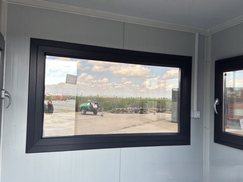 Windows: 2 sliding window on the short side, 1 large double-glazed PVC window on the long side