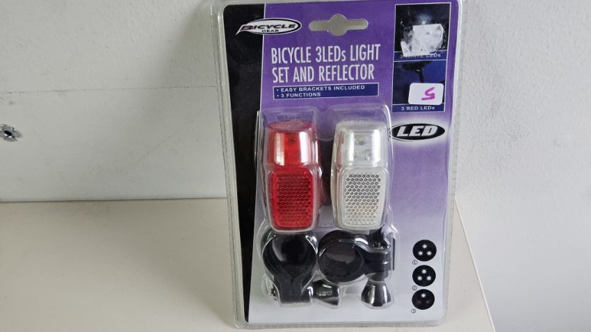 5 pc bicycle 3 led light , set and reflector 3 with led and 3 red led
