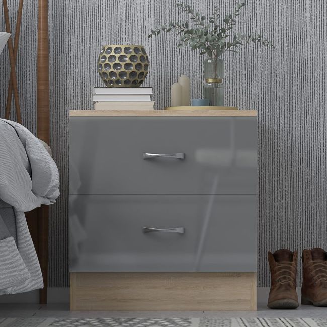 2 Drawer Bedside cabinet - The bedside cabinet in our high gloss bedroom furniture range has been manufactured with the strength and sturdiness you look for in a bedside, whilst the high gloss drawer front gives the piece that finesse that its been longing for
