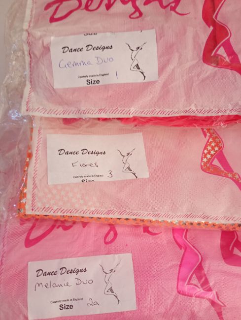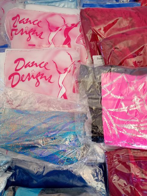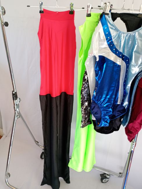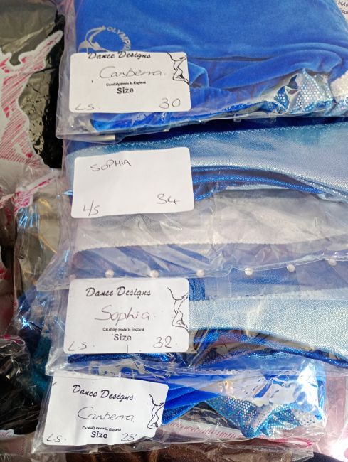100 x leotards / Catsuits dance gymnastics Festival Club Wear. Mix of sizes fabrics colours and styles. Approx RRP £3,000