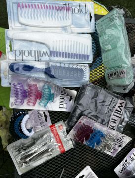 Womens hair clips brushes and combes different kinds clips and curlers head bands ect
