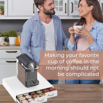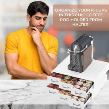 - A coffee pod holder designed to support your daily coffee needs; Divided into 6 rows each carrying up to 6 k cups; Holds up to 36 single serving coffee pods; Keeps your kitchen organized