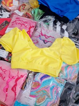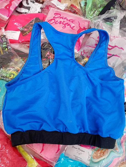 LOT 3 . 100 X TOPS. Mix Dance Designs/ Poledynamix.Gym/ Dance / gymnastics /Festival /Club Wear. MIXED SIZE STYLE AND COLOURS . APPROX RRP£1,200