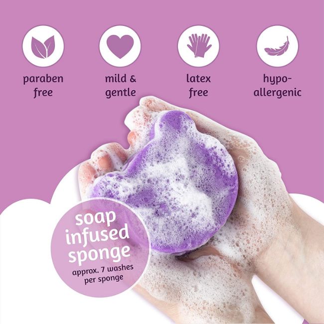 Simply wet the soft sponge to create a rich, creamy lather to clean, moisturize and massage your baby's delicate skin for a bath time experience that will leave them felling clean and relaxed.