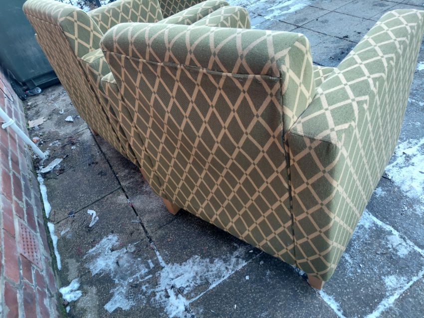 6x heavy comfortable chairs ideal for coffee shop cafe or care homrecomes with 3 times wood top metal frame tables collection or 3 pallets required for this lot