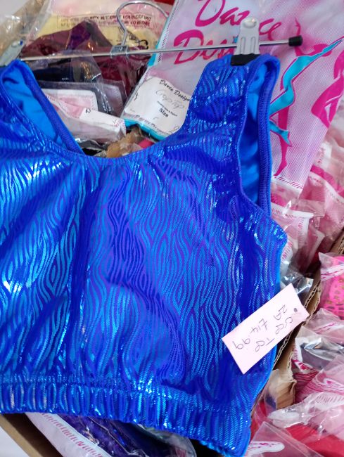 Lot 1 . 100 x Dance Designs. UK Manufacturer made with quality Heavy gauge materials. Crop tops mixed size style and colours approx rrp£1,200