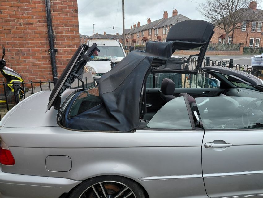 Bmw convertible 3 series petrol starts drives roof in full sorkimg order good alloy wheels come from a deceased estate clearance very clean car inside and out has been dry stored till recent in garage last mot shows 2022 in inspection test drive is well has to retail 3500 easy v5 present some recipets
