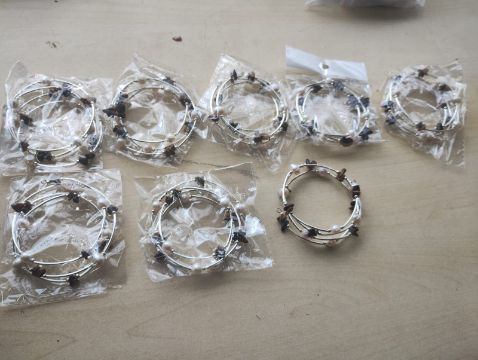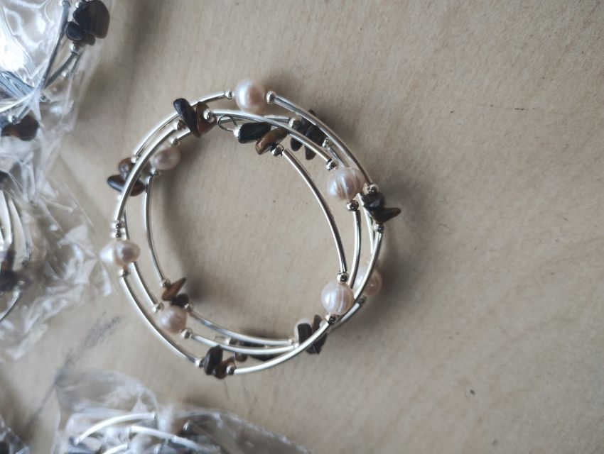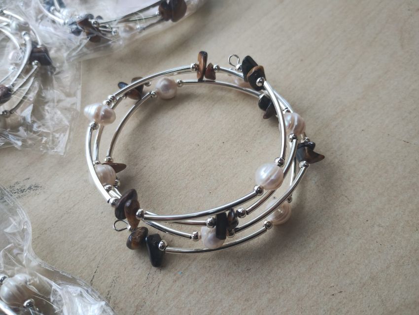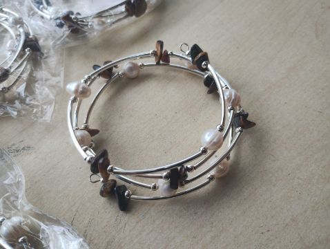 Tiger Eye + Pearl gemstone Crystal wrap around bangles SS - new in original packaging - Joblot of 8