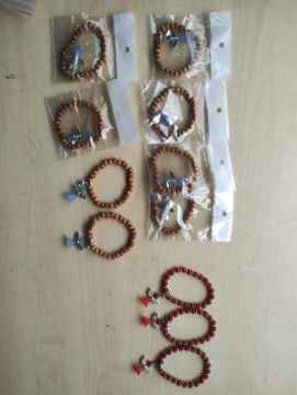 Red Cats eyes + Wooden - Angels Ball Crystal Bracelets - new in original packaging - Joblot of 12