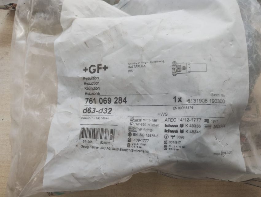+GF+ Instaflex 6207 E/F Reducer 63-32mm - 761 069 284 - Joblot of 3 - new in original packaging