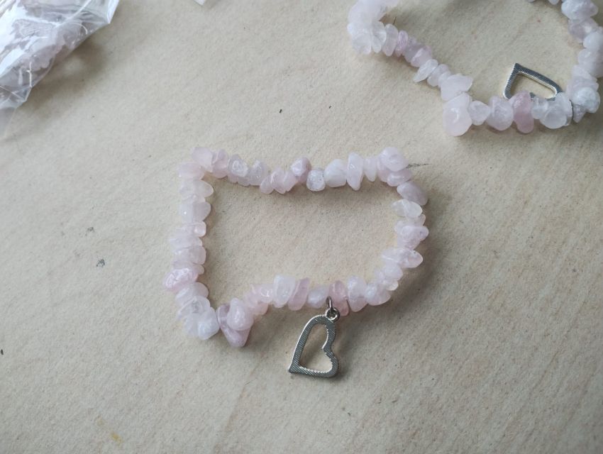 Rose quartz Crystal Chip Bracelet Hollow heart Silver - joblot of 27 - brand new