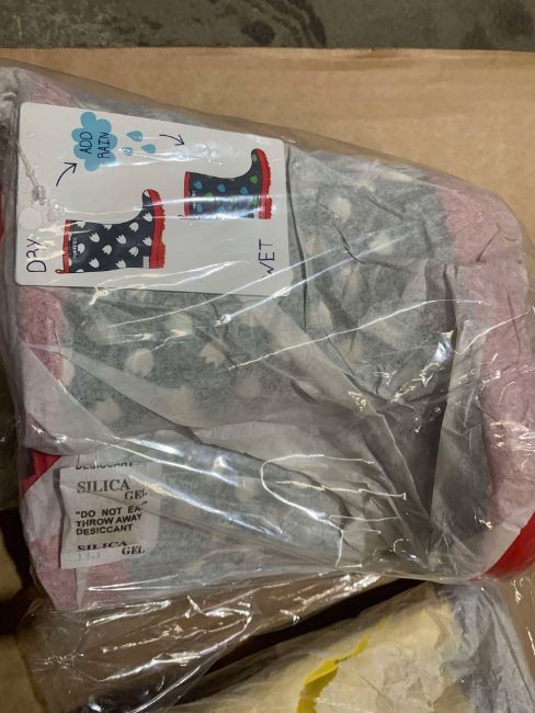 A bulk lot of 100 pairs of Squid Kids wellies. This lot includes 10 boxes of brand-new, colour-changing Squid Kids wellies in a mix of various sizes, styles, and colours.