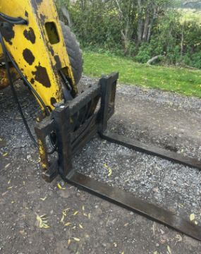 Features: Pallet forks, bucket, multiple steering modes, brakes