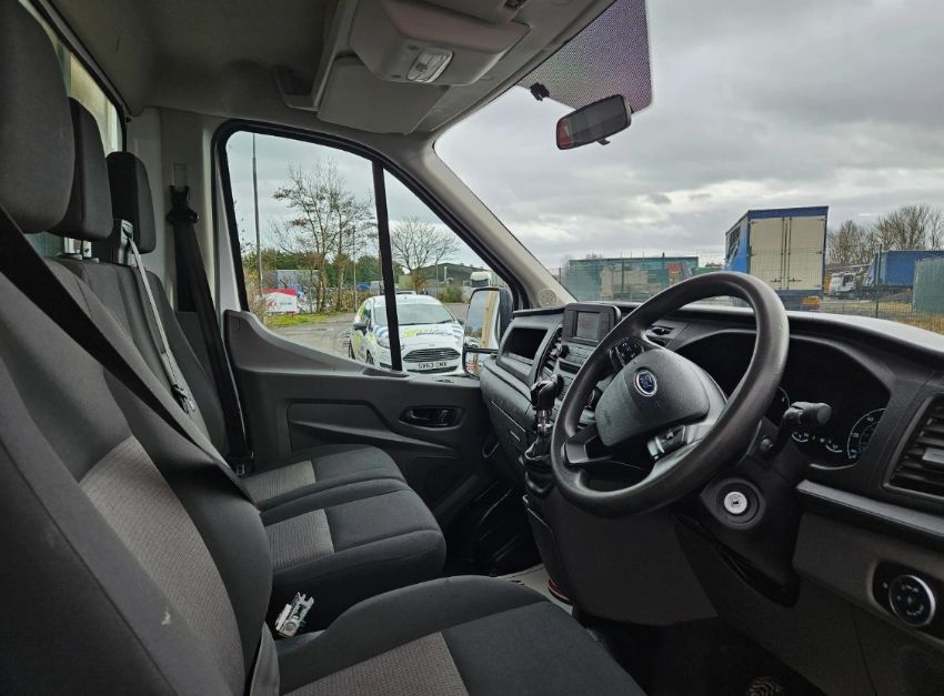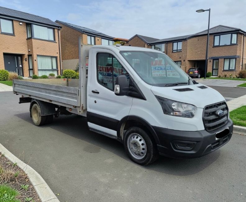 This 2022 Ford Transit 350 Leader EcoBlue LWB Dropside Pickup, finished in white, features a 1996cc diesel engine paired with a manual transmission. With 65,718 miles recorded, this Euro 6 compliant vehicle is suitable for ULEZ free zones. The Ford Transit, a globally recognised light commercial vehicle, is renowned for its versatility and durability, positioning it as a leader in the commercial van segment. The 350 designation indicates a higher gross vehicle weight, suitable for heavier loads, while the Leader trim level offers a practical and functional specification for commercial use. This particular model is a chassis cab configuration, fitted with a 14ft alloy dropside body, enhancing its utility for various transport needs. It is equipped with cloth trim, power-assisted steering, a 6-speed gearbox, electric windows, and a multi-function steering wheel. The drivetrain is a robust 4x2 rear-wheel drive system, typical for dropside applications, providing excellent traction under load. It also includes a tow pack and central locking. History checks confirm no outstanding finance and no write-off history. Two MOT tests are on record, both passed on the first attempt, with no advisories noted across its entire MOT history. The mileage progression is consistent across recorded data points, suggesting regular use. Dimensions: 6,022mm long × 2,176mm high. Single owner from new.