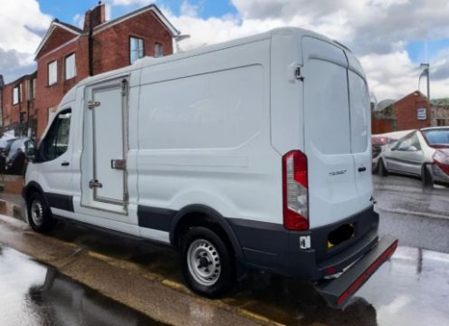 This 2019 FORD TRANSIT 350 Panel Van, finished in WHITE, is powered by a 1996cc Diesel engine paired with a 6-speed manual gearbox, featuring rear-wheel drive. As a Euro 6 compliant vehicle, it is ULEZ exempt, making it suitable for urban operations. The vehicle includes a GAH fridge unit with dual compartments, designed for temperature-controlled transport applications. Standard specification highlights include power steering, remote central locking, electric windows, USB ports, Bluetooth connectivity, and DAB radio. The Ford Transit 350 is positioned within the light commercial vehicle segment, known for its versatility and robust design. A wet belt change was completed in 2023, as noted by the seller. Four MOT tests are on record, all passed first time, with the current MOT valid until March 2027. A minor mileage recording variation exists in the MOT history, consistent with a data entry difference at a testing station. Vehicle history checks confirm no outstanding finance and no write-off history recorded. Dimensions: 5,981mm long × 2,543mm high. This vehicle has had a single owner from new.
