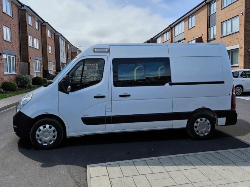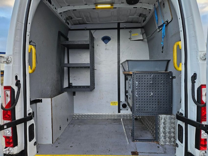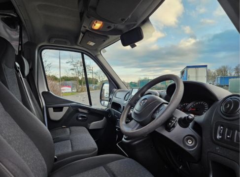 This 2018 VAUXHALL MOVANO L2H2 F3500 CDTI Panel Van, finished in White, features a 2298cc Diesel engine paired with a Manual transmission, displaying 70,000 miles. This Euro 6 compliant vehicle is equipped with a full service history, cruise control, air conditioning, and Bluetooth connectivity. The L2H2 (5,548mm long × 2,500mm high) mess unit specification includes a 240V invertor, microwave, hot water, a fold-down table, and a night heater. Further practical features comprise 3 rear seats, a rear bulkhead, rear shelving, and parking sensors for enhanced utility. Power assisted steering and a 6-speed gearbox are also present, alongside cloth seats. Vehicle history checks confirm no outstanding finance and no write-off history recorded. The vehicle has 9 MOT tests on record, with the current MOT valid until July 2026. MOT records indicate responsive maintenance, with any issues addressed promptly upon identification. The average annual mileage of 6,747 is low for a commercial vehicle of this type, with consistent mileage progression noted in MOT records, suggesting regular and moderate use. This single-owner example has been under the same management since new, according to DVLA records. The vehicle is ULEZ compliant. Recorded mileage varies across MOT history records. Full MOT history is available for review. Finance is clear.