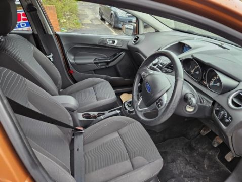 This 2015 Ford Fiesta Titanium 1.0L Petrol Manual Hatchback in Yellow presents with 49,000 miles on the odometer. A single owner from new, this vehicle features a Euro 5 emissions rating, making it ULEZ compliant. The vehicle is supplied with two remote keys and benefits from a full service history. Equipped with start/stop technology, the interior includes a CD player with Bluetooth connectivity, electric windows, air conditioning, and a multi-function steering wheel with cruise control. Exterior features include alloy wheels and parking sensors. Vehicle history checks confirm no outstanding finance and no recorded write-off history. Dimensions: 3,969mm long × 1,468mm high. This Ford Fiesta, a popular supermini in the B-segment, is presented in the Titanium trim level, which typically represents a higher specification within the Fiesta range, offering enhanced features and finishes. The 2015 model year features a 999cc petrol engine, delivering power to the front wheels via a manual transmission. The Ford brand is renowned for producing reliable and accessible vehicles. This particular Fiesta, a 5-door hatchback, has had one keeper from new. Specification highlights include the aforementioned parking sensors, cruise control, and Bluetooth connectivity, enhancing both convenience and safety. The vehicle's full service history provides a comprehensive record of its maintenance.