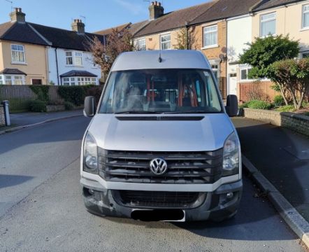 This 2013 Volkswagen Crafter CR50 Maxi TDI 143 LWB Minibus, finished in Metallic Silver, features a 1968cc Diesel engine with Manual transmission. The vehicle is a Euro 5 emission class model and has an MOT valid until March 2027. It presents with 142,000 miles recorded at its last MOT test, with total mileage currently at 142,790 miles; actual mileage may be higher since the last test. The vehicle has been under 1 Council owner direct from new, reflecting consistent stewardship. Specification includes cloth trim, power-assisted steering, 9 seats with 3-point seat belts, side windows, a skylight, and an electric side door. Further amenities include night heaters, roof lighting, a CD player, and central locking. The vehicle history checks confirm no outstanding finance and no write-off history recorded. The MOT history records 15 tests, with the latest test passed. This Crafter CR50 Maxi TDI 143 offers a practical and well-equipped commercial solution.