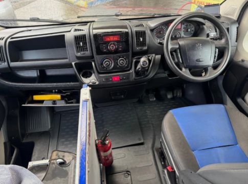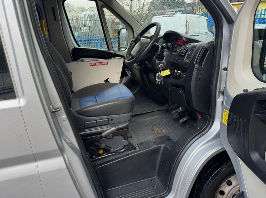 This 2014 PEUGEOT BOXER L3H2 (5,998mm long × 2,524mm high) Panel Van, finished in Silver, presents with 82,972 miles. Powered by a 2198cc Diesel engine paired with a 6-speed manual gearbox, this Boxer was previously configured as an ex-patient transfer bus. It features power steering, central locking, electric windows, and air conditioning. The vehicle is supplied direct from the user. MOT records show 17 MOT tests on file. The seller notes that the rear lights and ramp are not currently working, suggesting the vehicle may have been decommissioned in part and requires attention in these areas. The rear ramp itself is also noted as needing attention. This vehicle has a single owner from new, and vehicle history checks confirm no outstanding finance and no write-off history recorded. A minor mileage recording variation exists in the MOT history, consistent with a data entry difference at a testing station. The vehicle is within its initial 3-year MOT exemption period, with an MOT valid until March 2027.