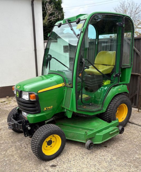 A well-maintained John Deere X748 Ultimate diesel ride-on mower.