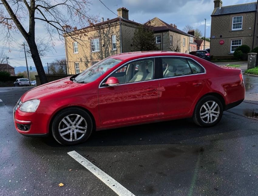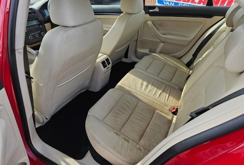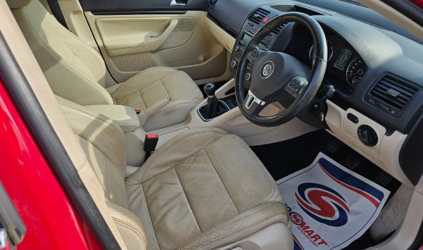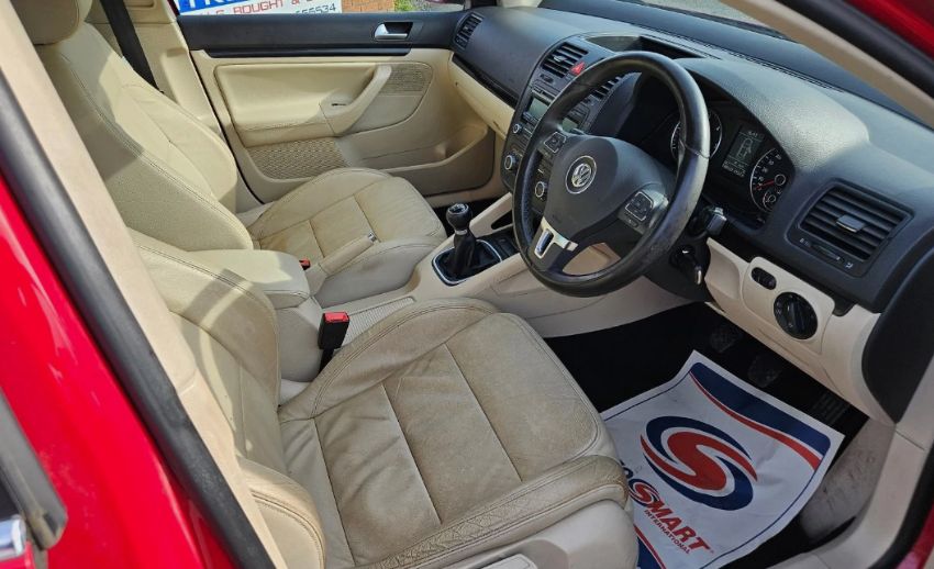 This 2010 Volkswagen Jetta SE TDI 2.0L Diesel Manual Saloon in Red presents with 148,000 miles and has had two owners since new. The vehicle, a Volkswagen Jetta SE TDI, is a compact executive car, positioned within the C-segment. It is equipped with a 6-speed manual transmission and is Euro 4 compliant. The 1968cc diesel engine powers the front-wheel-drive (FWD) drivetrain. Specification highlights include full leather seating, a comprehensive electric pack, CD player, alloy wheels, multi-function steering wheel, and central locking. With 21 MOT tests on record, the history indicates consistent road use, with previous mechanical attention noted by successful retests following earlier recorded failures. Vehicle history checks confirm no outstanding finance and no write-off history recorded. The Jetta SE TDI offers a well-documented history for trade consideration. Dimensions: 4,554mm long × 1,459mm high.
