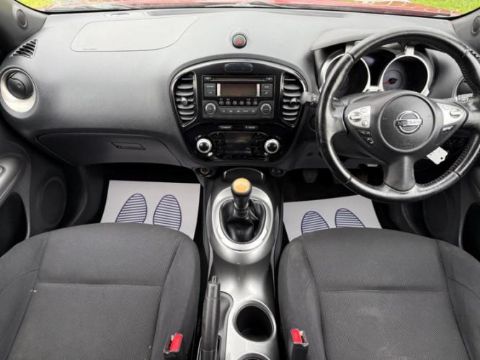 This 2014 NISSAN JUKE ACENTA DCI 1.5L Diesel Manual SUV in Red, with 133,546 miles, features a single owner from new and a long MOT valid until March 2027. The Nissan Juke, a compact SUV, is positioned within the brand's diverse vehicle lineup. The Acenta trim level offers a balance of features and value within the Juke range. This front-wheel-drive model is equipped with a 1461cc diesel engine. The vehicle is supplied with part service history and benefits from a low annual road tax. Key features include traction control, cruise control, alloy wheels, electric windows, electronic brakeforce distribution, and electronic stability control. Additional specifications include front fog lights, air conditioning, and an integrated audio system with steering wheel controls. The exterior design is characterized by its distinctive styling. Vehicle history checks confirm no outstanding finance, no recorded theft, and no write-off history. There are 14 MOT tests on record, with the latest test passed. Dimensions: 4,135mm long × 1,565mm high.