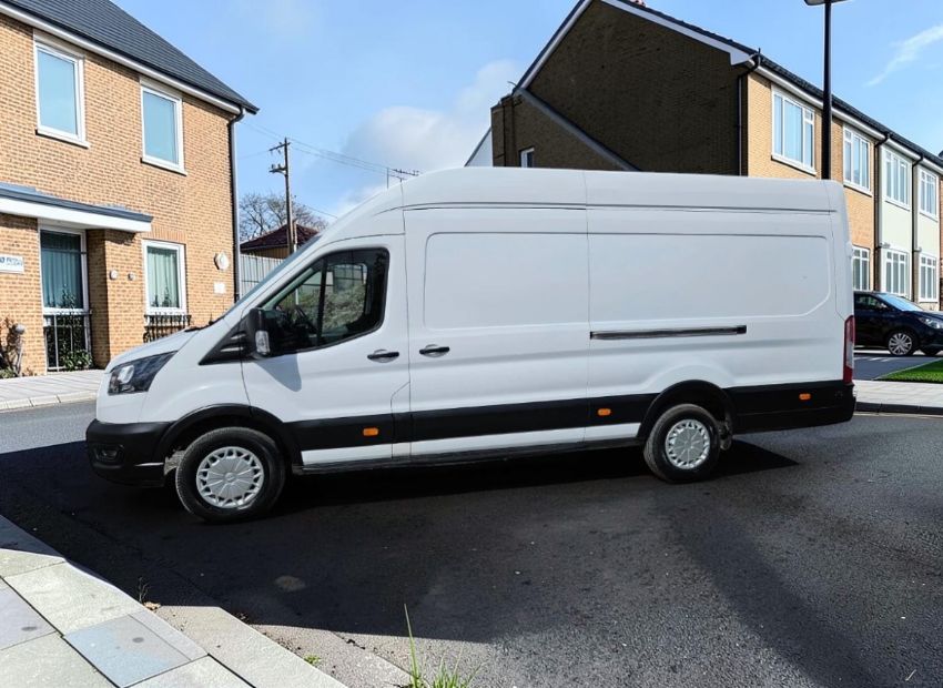This 2022 FORD TRANSIT 350 LEADER ECOBLUE L4H3 (6,704mm long × 2,790mm high) Panel Van, finished in White, presents with 68,586 miles on the odometer. It features a Euro 6 compliant 1996cc Diesel engine paired with a 6-speed manual transmission, making it ULEZ compliant. The vehicle has had a single company owner from new and is equipped with cloth trim, power-assisted steering, electric windows, a multi-function steering wheel, and Bluetooth audio connectivity. Practical elements include a side loading door, full bulkhead, wood-lined cargo area, and central locking for security. Two MOT tests are on record, with all passing on the first attempt, and the vehicle has a valid MOT. Finance is clear, and no write-off history is recorded for this Panel Van.