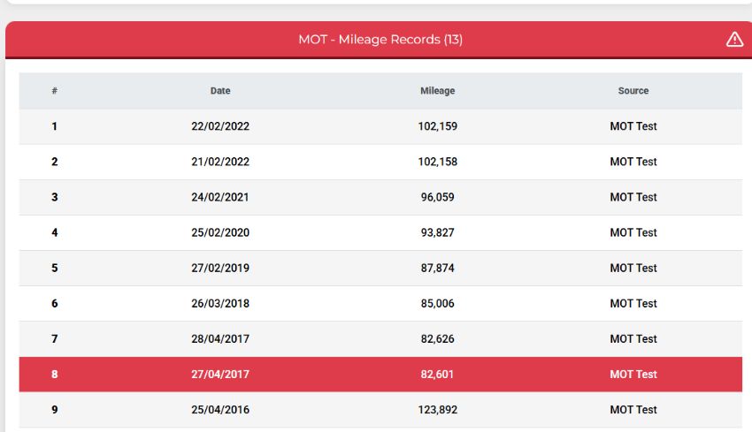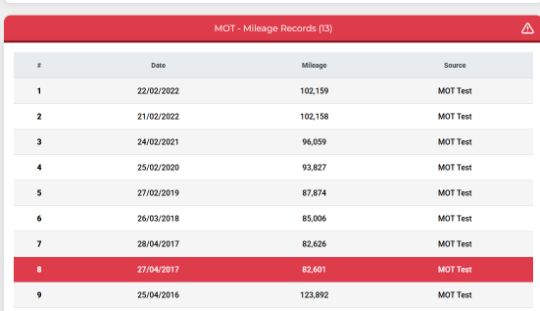 As of report date {25/04/2025} category C & Mileage Anomaly Issues -See image!