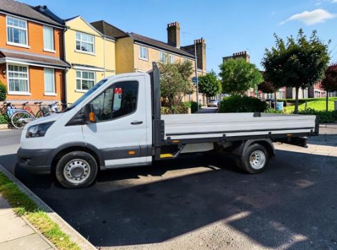 This 2018 Ford Transit 350 L4H1 LWB Chassis Cab, finished in White, features a 1996cc Diesel engine paired with a manual transmission, showing 116,000 miles. It is a Euro 6 compliant vehicle, making it ULEZ free. Key features include cloth trim, power-assisted steering, a 6-speed gearbox, electric windows, Bluetooth/stereo connectivity, a multi-function steering wheel, and central locking. The vehicle is fitted with a 14ft dropside body. One keeper is recorded from new, and the vehicle has 7 MOT tests on record, with the current MOT valid until October 2026. Outstanding finance is recorded against this vehicle.