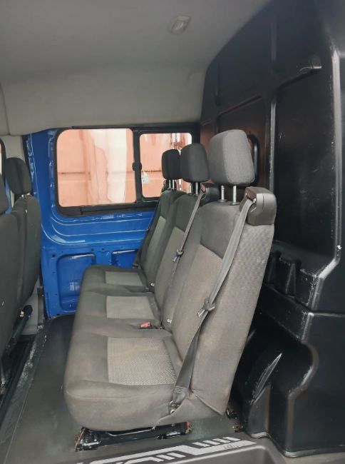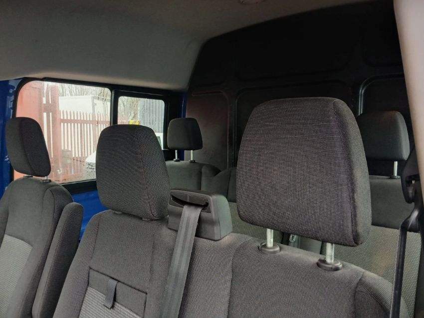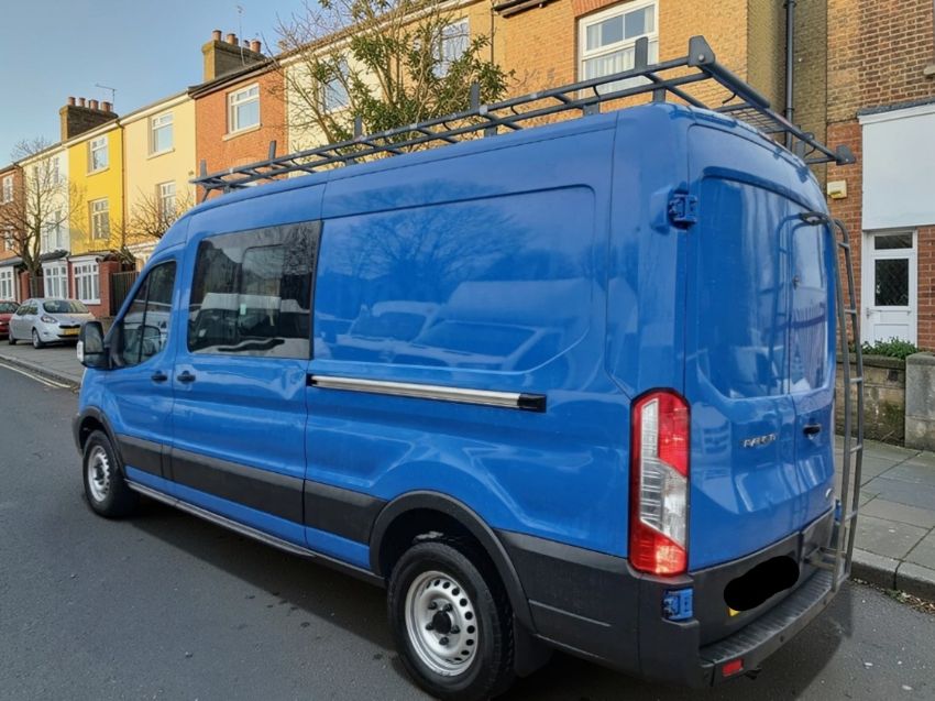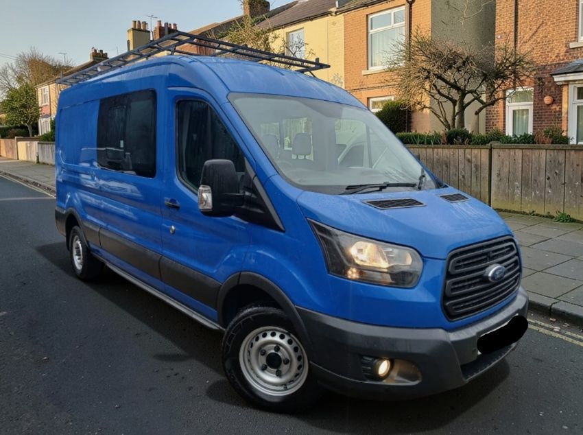 This 2017 Ford Transit 350 L3H2 (5,981mm long × 2,543mm high) Panel Van, finished in blue, features a 1996cc diesel engine paired with a manual transmission. This direct company vehicle has two owners on record and a current mileage of 121,000 miles. It is equipped with a factory-fitted 6-seat crew van configuration, making it versatile for both passenger and cargo transport. The vehicle is Euro 6 and ULEZ/CAZ compliant, ensuring no emissions charges in restricted zones. Practical additions include a galvanised roof rack and a rear door ladder, alongside front and rear parking sensors for enhanced manoeuvrability. Further specification includes front fog lights, electric windows, and an infotainment system offering Bluetooth, USB, FM/AM, and DAB radio with hands-free connectivity. A full service history is noted, including recent attention to the wet belt. The vehicle has 6 MOT tests on record, all passed on the first attempt, and the MOT is valid. Vehicle history checks confirm no outstanding finance and no write-off history recorded. Cosmetic marks are present on the bodywork. No outstanding finance is recorded.