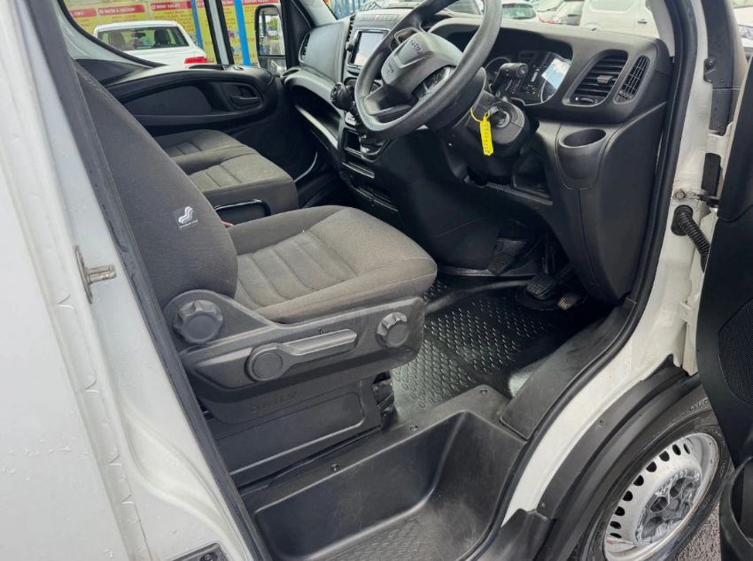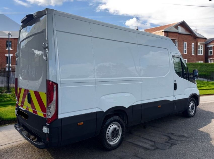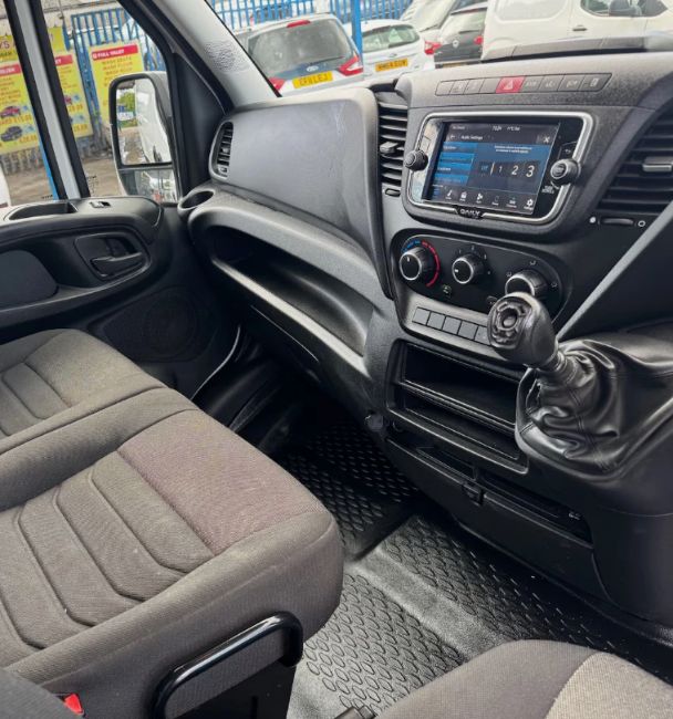 This 2022 IVECO DAILY 35S14B L2H3 (5,687mm long × 2,641mm high) Panel Van, finished in White, features a 2287cc Diesel engine paired with a Manual transmission. Showing 70,000 miles, this Euro 6 compliant vehicle is noted by the seller as a 2022 72 Reg model, direct from a company. It offers a comprehensive specification including power steering, remote central locking, electric mirrors, electric windows, and air conditioning. Further enhancing its utility are a reverse camera, side door access, a big screen entertainment system, Bluetooth connectivity, and cruise control. The vehicle is within its initial 3-year MOT exemption period, so no MOT test history is currently available. Vehicle history checks confirm no outstanding finance and no write-off history recorded. The seller notes this is a one-owner vehicle and the price is plus VAT.