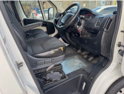 This 2016 PEUGEOT BOXER 335 L3H2 BLUE HDI Panel Van, finished in White, features a 1997cc engine paired with a manual transmission, showing 107,722 miles. It is a Euro 6 ULEZ compliant vehicle. The van measures L3H2 (5,998mm long × 2,522mm high). Key features include power steering, remote central locking, and electric windows. Additionally, it offers Bluetooth connectivity and a side hydraulic lift for operational convenience. The vehicle has a valid MOT until 28th January 2027. This vehicle has 0 total keepers recorded and the seller states it had 1 owner direct from a large national company, indicating a single-entity operational history. Eight MOT tests are recorded, with the latest test resulting in a pass. History checks confirm no outstanding finance and no write-off history. The seller notes this vehicle is priced at trade money and will be sold on trade terms. Dimensions: 5,998mm long × 2,522mm high.