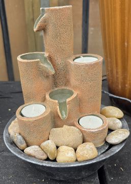 TIERED COLUMN TABLETOP FOUNTAIN WITH TEALIGHT CANDLE HOLDERS