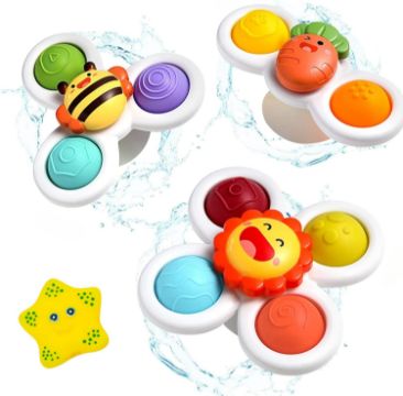 - The Spinner Suction Baby Toys transform into entertaining bath toys instantly! As water flows onto the leaves, these toys spin, making bath time enjoyable for babies. With vibrant colors, adorable animal shapes, and rotating wind blades, they captivate children's attention and ignite their interest in play, relieving emotional stress. These suction toys are also beneficial for soothing babies during eating, bathing, sleeping, and travel, making them versatile companions in various situations.