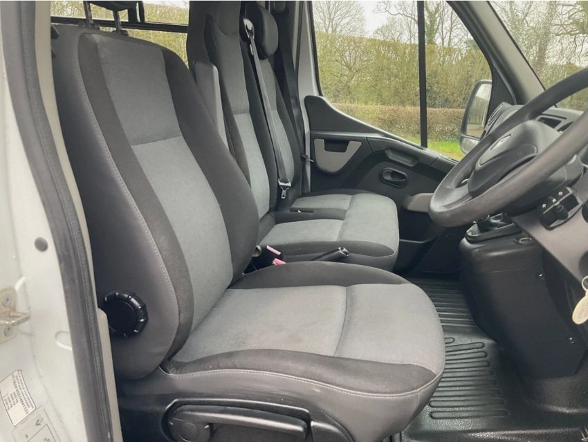 This 2016 Renault Master LM35 Business dCi L3H2 (6,198mm long × 2,488mm high) Panel Van features a 2298cc diesel engine with a manual transmission, showing 34,033 miles. The vehicle is presented in white and is configured as a 2-berth campervan with three seat belts. The camper conversion includes a washroom with toilet, air conditioning, diesel warm air central heating, and hot water. The kitchen area is equipped with a sink, microwave, and fridge. Further amenities include LED lighting, a dining table, two leisure batteries, mains hook-up, and a Freeview TV. Driver conveniences feature electric front windows, electric door mirrors, a reverse camera, towbar with electrics, radio, CD player, and USB charge points. The vehicle has a service history on record and has just passed its MOT. Eight MOT tests are recorded, with the current MOT valid. The vehicle remains with its original keeper, indicating consistent ownership from new. The recorded history shows no significant structural or mechanical issues. This Renault Master presents as a low-mileage example with a clear history.