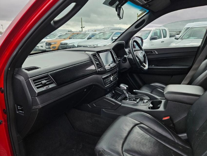 This 2023 Ssangyong Musso Saracen+ Auto 2.2 Diesel Pick Up in Red, with 35,400 miles, presents a high-specification example of the model. It features a full electric pack, heated black leather upholstery, dual climate control, and air conditioning. Additional amenities include cruise control, Bluetooth/stereo connectivity, a multi-function steering wheel, and practical side steps. The vehicle is equipped with alloy wheels, a load liner, a reversing camera, and parking sensors, complemented by metallic paint and central locking. The vehicle is ULEZ compliant with a Euro 6 emission class. It has a single recorded keeper from new and has passed its initial MOT, valid until March 2027. One MOT test is on record, with the latest test passed. History checks confirm no outstanding finance and no write-off recorded. The vehicle's ownership profile indicates stability, with consistent mileage progression noted in its records. The clear history and passed MOT suggest a well-preserved asset.