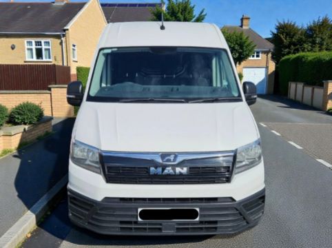This 2020 MAN TGE 3.140 L3H2 (5,986mm long × 2,355mm high) Panel Van, finished in White, features a 1968cc Diesel engine paired with a Manual transmission. The MAN TGE is positioned in the light commercial vehicle segment, offering a range of panel vans and chassis cabs. This specific model, the 3.140, indicates a gross vehicle weight of 3.5 tonnes and an engine output of 140 PS. The vehicle is Euro 6 compliant and ULEZ free. It has 137,000 miles on the odometer and is supplied with an MOT valid until October 2026. This example has had one former owner and is equipped with cloth trim, power-assisted steering, a 6-speed gearbox, cruise control, and air conditioning. Further features include electric windows, a multi-function steering wheel, Bluetooth/stereo connectivity, a reversing camera, a bulkhead, woodlining, and central locking. Three MOT tests are on record, all passed on the first attempt. Vehicle history checks confirm no outstanding finance and no write-off history recorded. Dimensions: 5,986mm long × 2,355mm high.