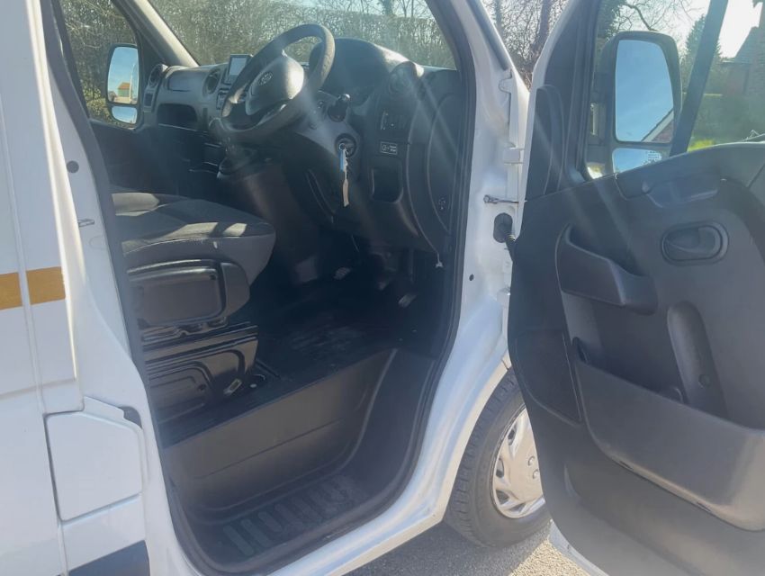 This 2019 VAUXHALL MOVANO L2H2 F3500 CDTI Panel Van, finished in WHITE, presents with 61,000 miles and a 2298cc Diesel engine paired with a Manual transmission. The Movano, a prominent model in the large panel van segment, is known for its robust utility and spacious cargo capacity. This specific L2H2 variant, measuring 5,548mm long × 2,500mm high, is Euro 6 compliant and ULEZ compliant, ensuring adherence to modern emissions standards. It is equipped with air conditioning, a reverse camera, and electric front windows for enhanced driver comfort and convenience. Additional features include cruise control, DAB radio, remote central locking, and a rear step, contributing to its practicality. The rear compartment offers a dedicated storage area with LED internal and external lighting, USB charge points, and a 12/240 volt inverter, making it suitable for various professional applications. For added utility, it features a hot water boiler and a hot/cold sink, alongside opening rear windows. The vehicle's drivetrain is front-wheel drive. Finance is clear, and no write-off history is recorded. Eight MOT tests are on record, with the current MOT valid until July 2026. Dimensions: 5,548mm long × 2,500mm high.