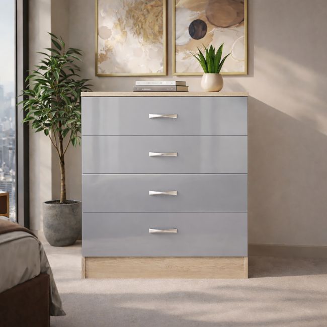 With its clean stylish design and rich high gloss finish, this Harmin 4 Drawer Chest will blend in seamlessly with any modern or traditional bedroom. The 4 Drawer Chest has been manufactured with the strength and sturdiness you look for in a chest, whilst the high gloss drawer front gives the piece that finesse that its been longing for.