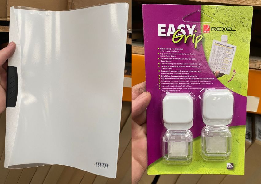 (SP / P2) - 1800 Otto White Doc Wallet & 524 Rexel Easy Grip Adhesive Clips for mounting onto smooth surfaces