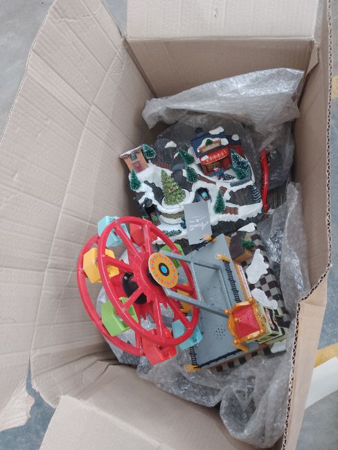 (P134) - 1 Return pallet of trees, fake snow, fibre optic trees, festive scenes and ornaments